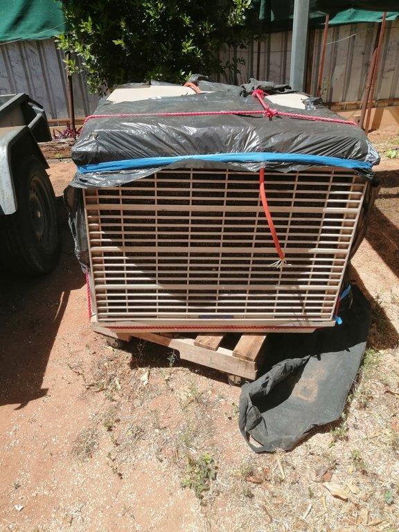 VARIOUS - air-conditioner, evaporative, suit house or shed, 1hp, 2-speed motor, new padding, $700. Three piece brown leather lounge, $700. All good condition. Delivery negotiable. Phone 0491769289.